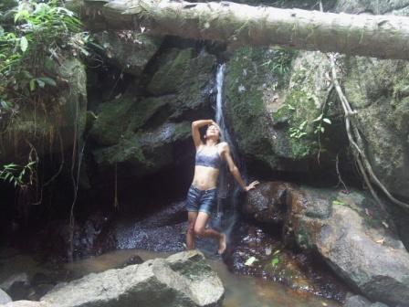 Nalin cooling off in one of three waterfalls on Phuket. Nice to take a bikeride on a hotday and get refreshed under a waterfall.
