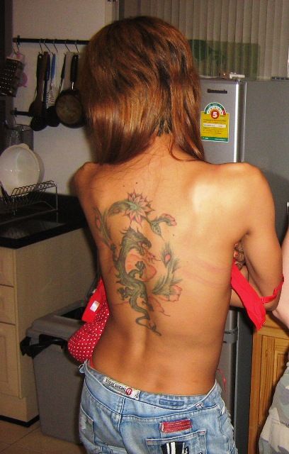 Noi from Libra bar with the tramp stamp over her ass.